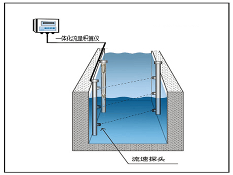 通過(guò)分層的算出各自的流速進(jìn)而可以算出該斷面的平均流速,積算儀表或上位機(jī)得到這個(gè)流速后結(jié)合液位傳感器測(cè)出的液位算出斷面積進(jìn)而計(jì)算出斷面的流量。